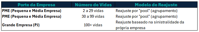 A Agência Nacional de Saúde Suplementar (ANS) e as operadoras de saúde segmentam os planos empresariais principalmente pelo número de beneficiários, o que impacta diretamente as regras de carência, reajuste e negociação.